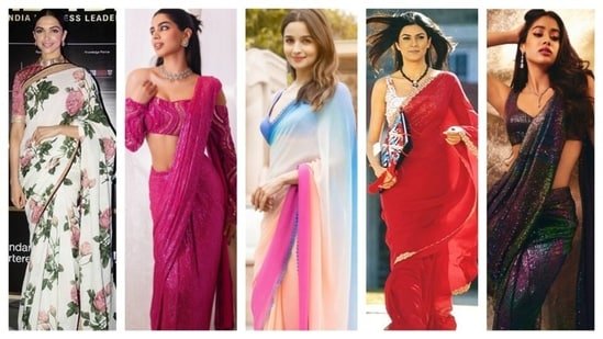 But some events and occasions call for lighter contemporary options that are just as stylish, whether it is to add shimmering glam, breezy elegenace or floral playfulness. Name the occasion, be it a daytime brunch, festive celebration or glam evening party, certain lightweight contemporary staples work around the clock. And who better to inspire than Bollywood divas, both on-screen and off, with their head-turning saree looks.