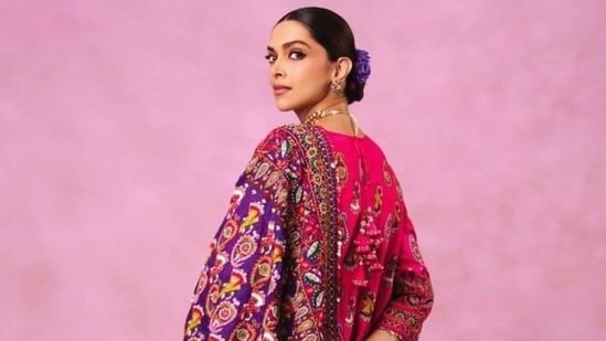 In a March 16 Instagram post, Shaleena Nathani, a fashion stylist, dropped photos of Deepika Padukone all draped in a Gujarati outfit. Deepika opted for a beautiful embroidered straight pink kurta, slightly flared, reaching below the knees. The high round neckline features intricate multicoloured threadwork with traditional motifs. Additionally, the heavy yoke embroidery forms a statement bib-style design across the chest and a wide border at the flared end is decorated with red tassels, adding movement and texture.