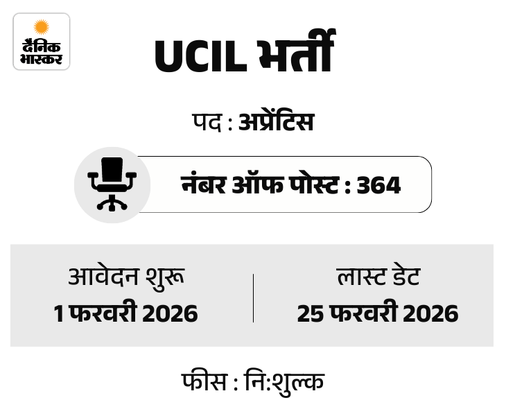 यूरेनियम कॉर्पोरेशन ऑफ इंडिया लिमिटेड (UCIL) में अप्रेंटिसशिप के पदों पर भर्ती निकली है। इस भर्ती के लिए आवेदन की आखिरी तारीख 28 फरवरी तय की गई है। उम्मीदवार अप्रेंटिसशिप पोर्टल apprenticeshipindia.gov.in पर जाकर ऑनलाइन आवेदन कर सकते हैं।