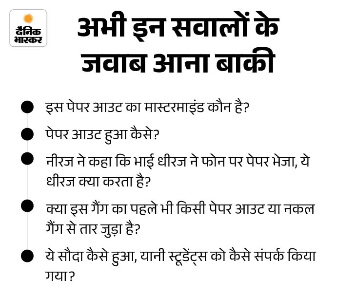 - पूछताछ में ये हुआ खुलासा: CM फ्लाइंग के SI कर्मबीर ने पूछताछ की तो नीरज और सचिन ने बताया कि वे छात्रों को अगले दिन (18 दिसंबर) होने वाले CSIR-UGC NET एग्जाम के पेपर उपलब्ध करवा रहे हैं। यह सौदा प्रति छात्र 3 से 4 लाख रुपए में तय हुआ है।