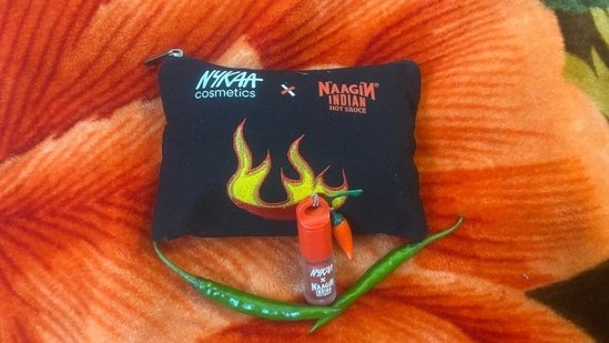 The packaging of Nykaa X Naagin plumping lip gloss immediately stood out: A sleek tube with a playful, spicy theme that felt fun and different from your everyday gloss.