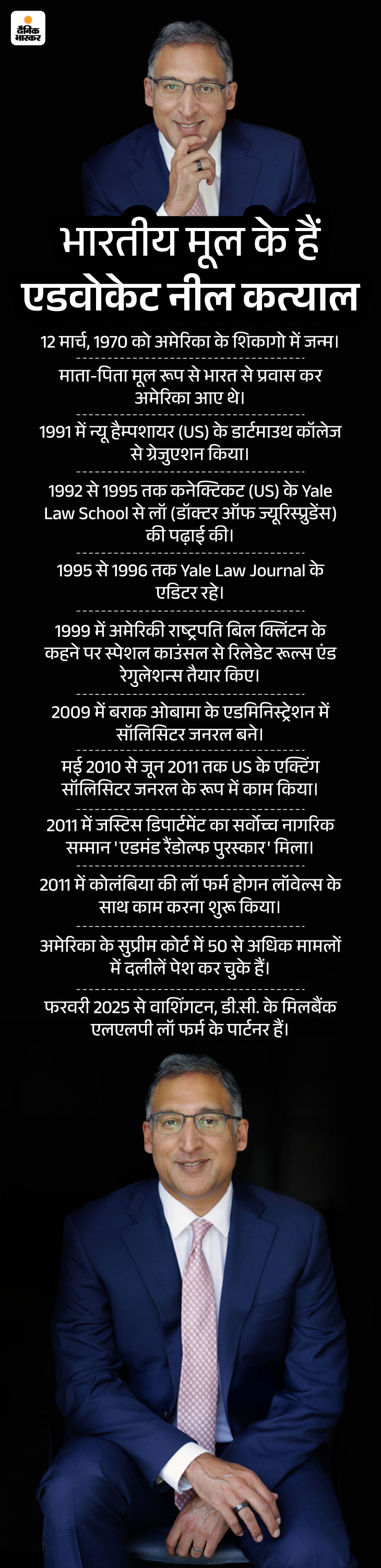 कत्याल का कहना है कि IEEPA कानून राष्ट्रपति को टैक्स या टैरिफ लगाने का अधिकार नहीं देता है। ऐसा करना अमेरिकी कांग्रेस की पावर पर अतिक्रमण जैसा है।