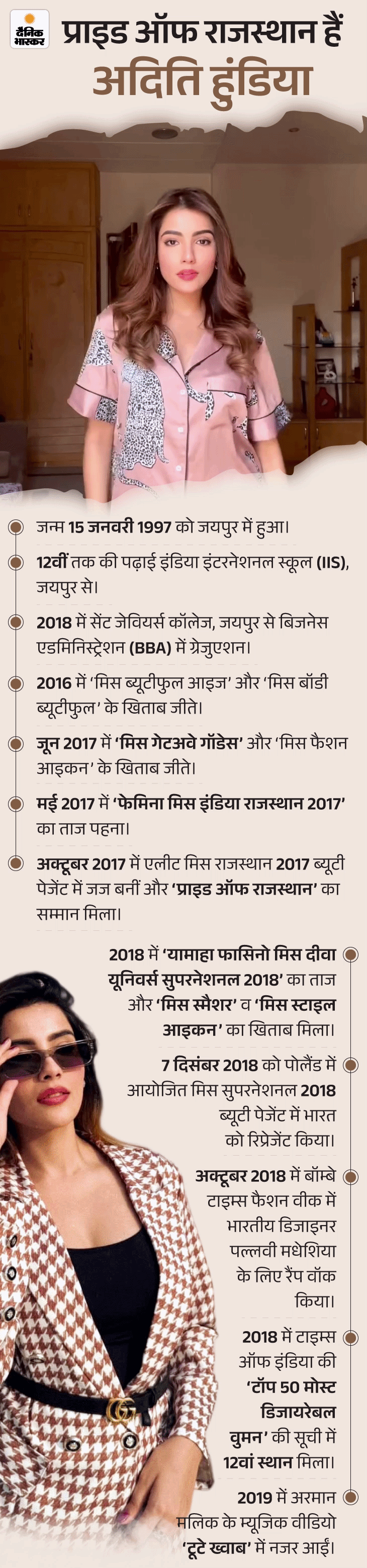 लेकिन अदिति ने पढ़ाई के साथ छोटे-छोटे लोकल कॉम्पिटिशन में हिस्सा लेना शुरू किया। 2016 में एलीट मिस राजस्थान में ‘मिस ब्यूटीफुल आइज’ और ‘मिस बॉडी ब्यूटीफुल’ जैसे टाइटल जीतने पर परिवार की सोच बदलने लगी।
