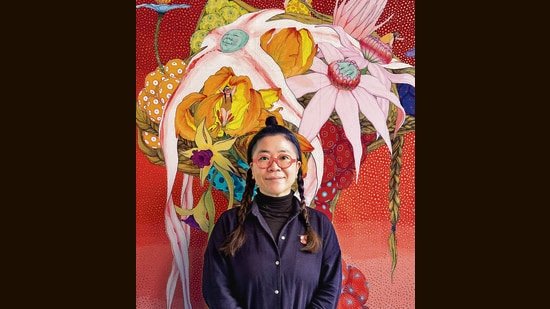 Ito, who is in her mid-40s, is part of a cohort of Japanese artists practising this technique amid a highly experimental contemporary art scene, marked by the likes of Yayoi Kusama and Yasumasa Morimura. “I initially focused on nihonga, but over time I became interested in transforming my paintings into three-dimensional forms; objects that could be physically experienced. This led me to explore sculptural practices. I have also experimented with a range of media, including photographic works in collaboration with Barcelona-based photographer Toni Mateu, murals, and soft sculpture installations such as the one I (am showing) in India. I am always open to working with different materials, as long as they align with the concept I wish to express,” Ito says.