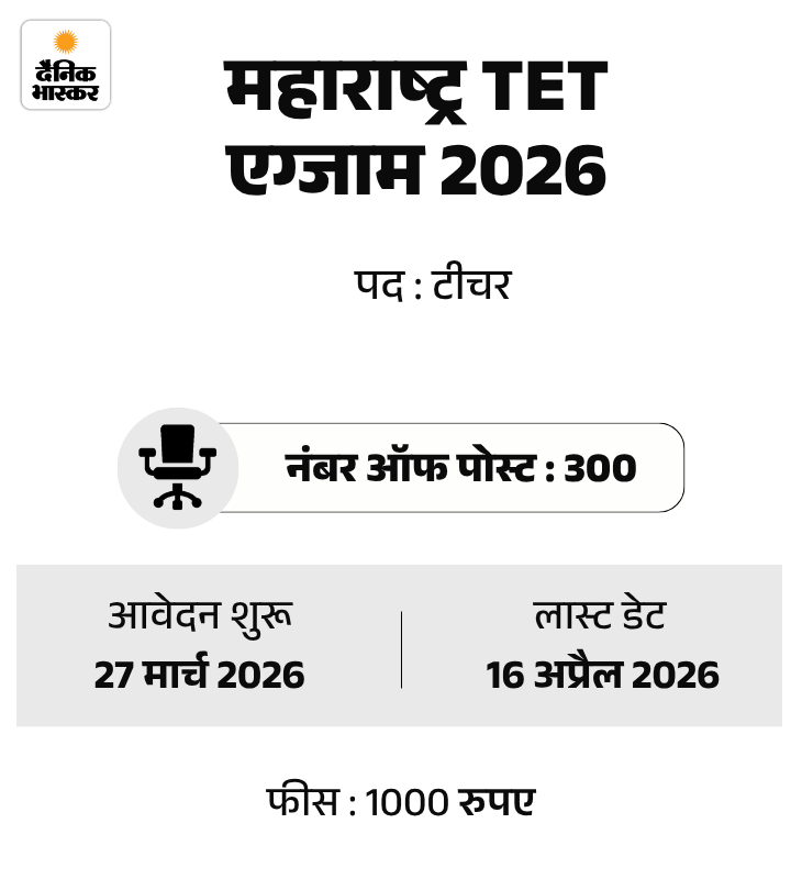 1. महाराष्ट्र TET एग्जाम 2026 के लिए आवेदन शुरू, 21 जून को एग्जाम