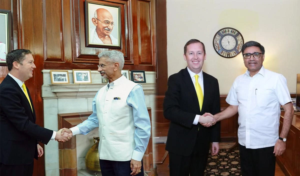 विदेश मंत्री एस. जयशंकर ने आज अमेरिका के नवनियुक्त राजदूत सर्जियो गोर से नई दिल्ली में मुलाकात की। दोनों के बीच भारत-अमेरिका के बढ़ते रणनीतिक साझेदारी संबंधों और उसकी वैश्विक महत्ता पर चर्चा हुई। हम आपको बता दें कि सर्जियो गोर अमेरिकी सीनेट से अपनी नियुक्ति के अनुमोदन के बाद भारत की छह दिवसीय यात्रा पर हैं। उनके साथ अमेरिकी उप सचिव (प्रबंधन और संसाधन) माइकल जे. रिगस भी मौजूद थे।