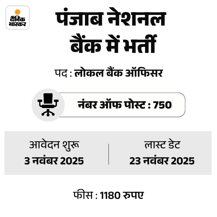 पंजाब नेशनल बैंक (PNB) ने स्पेशलिस्ट ऑफिसर (SO) के पदों पर भर्ती निकाली है। उम्मीदवार ऑफिशियल वेबसाइट pnb.bank.in पर जाकर आवेदन कर सकते हैं।
