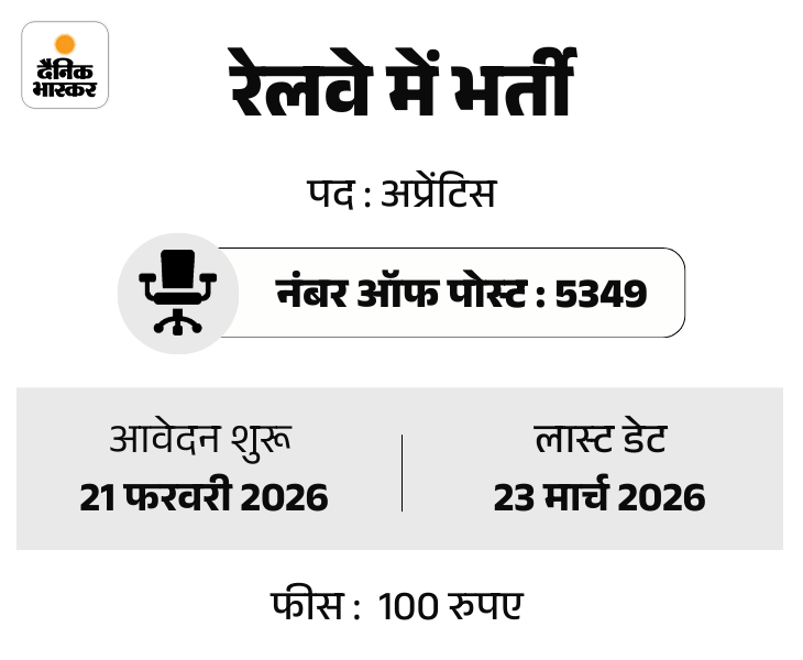 रेलवे रिक्रूटमेंट सेल (RRC) ने पश्चिम रेलवे भर्ती का नोटिफिकेशन जारी किया है। इस भर्ती के लिए आवेदन प्रक्रिया 21 फरवरी से शुरू होगी। उम्मीदवार ऑफिशियल वेबसाइट https://www.rrc-wr.com पर जाकर आवेदन कर सकेंगे। यह ट्रेनिंग एक साल के लिए दी जाएगी।