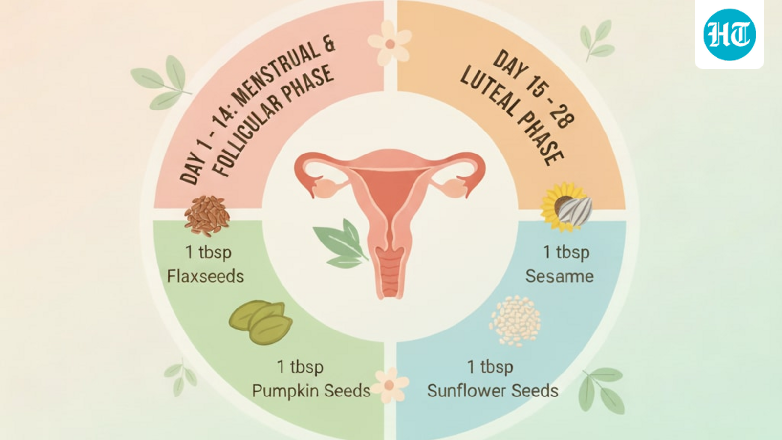 Seed cycling is a method to improve your health by adding specific seeds to the diet at different points in the menstrual cycle. “In the first half of your cycle, called the follicular phase (from the first day of your period until ovulation), eat flaxseeds and pumpkin seeds”, Dietician Bharathi Kumar from Fortis Hospital tells Health Shots. In the second half, known as the luteal phase (from ovulation until your next period), switch to sunflower seeds and sesame seeds.