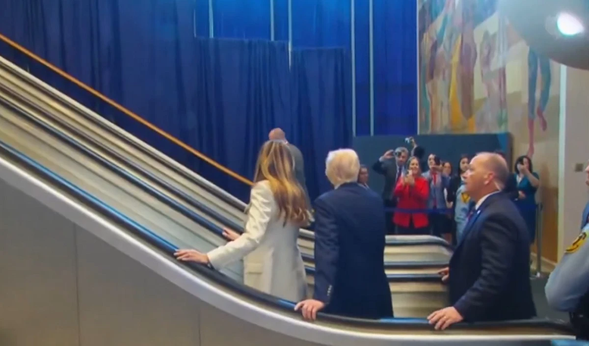 NOW – Escalator at UN headquarters immediately stops as Trump and Melania step on it shortly after arriving. pic.twitter.com/8nlUkDoQxm